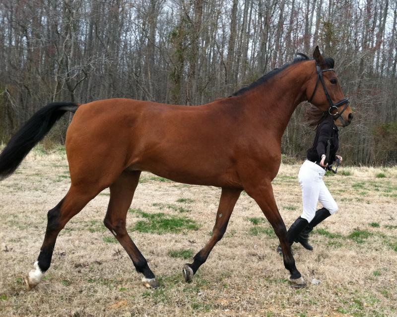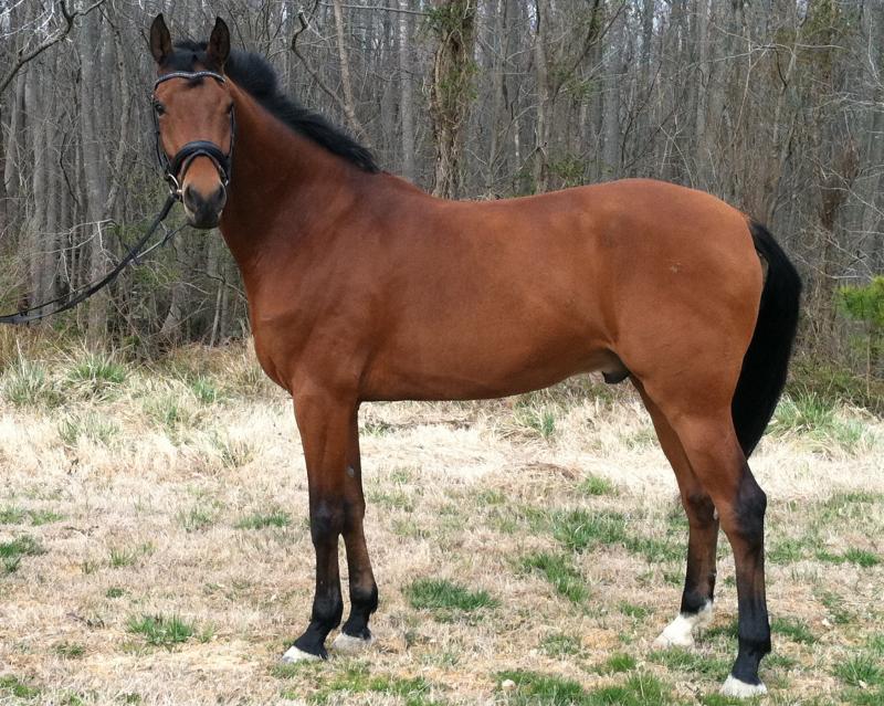 Trained in Dressage, saddle seat and trails in English or western tack in snaffle bit! Handsome Bay with 2 hind socks and smidge of white rt fore! Started lateral work leg yields, shoulder-in, turn on haunches, turns on forehand, canter departs from walk and halt.